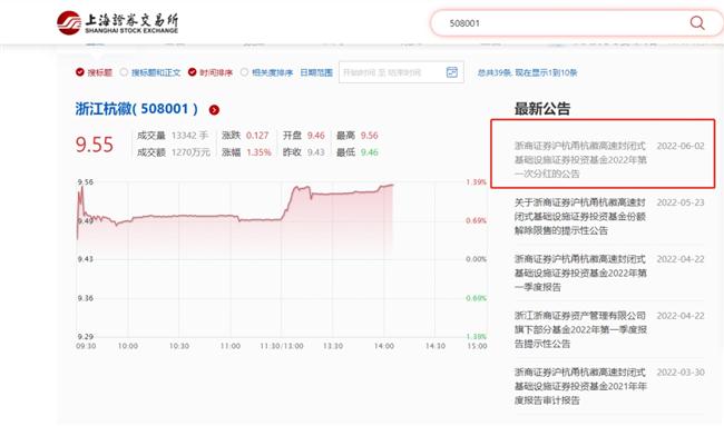 2022年6月2日,“浙商證券滬杭甬杭徽高速封閉式基礎(chǔ)設(shè)施證券投資基金(簡稱“浙商滬杭甬REITs”)”發(fā)布分紅公告,以2021年12月31日為基準(zhǔn)日進(jìn)行2022年首次分紅,這是項目上市以來第二次分紅,本次分紅金額3.64億元,累計分紅金額達(dá)5.33億元,實際分紅比例高達(dá)98%。