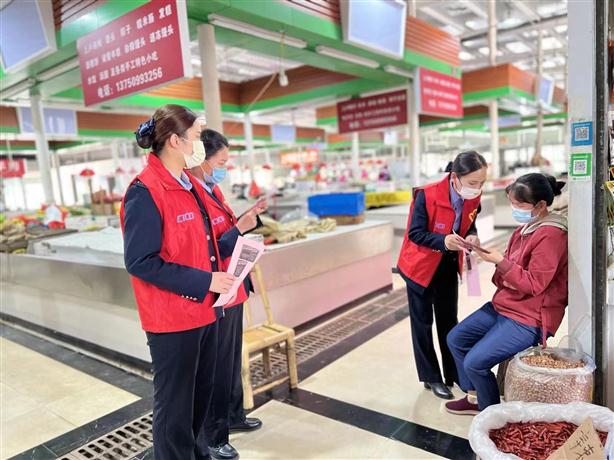 深入群眾講精神。“阿姨,黨的二十大報(bào)告指出,要全面推進(jìn)鄉(xiāng)村振興。通俗一點(diǎn)講就是要找到我們農(nóng)村發(fā)展的特色路子,讓大伙兒的腰包都鼓起來(lái)。還要通過(guò)建設(shè)和美鄉(xiāng)村,讓大伙兒的居住環(huán)境更漂亮,出門(mén)辦事更方便?!苯?,紹興管理中心東陽(yáng)收費(fèi)所黨支部組織志愿宣傳隊(duì)走進(jìn)東陽(yáng)上盧農(nóng)貿(mào)市場(chǎng),用村民愛(ài)聽(tīng)的“家鄉(xiāng)話”生動(dòng)講述了黨的二十大報(bào)告中的熱詞,將黨的新思想、新論斷宣傳到大街小巷。